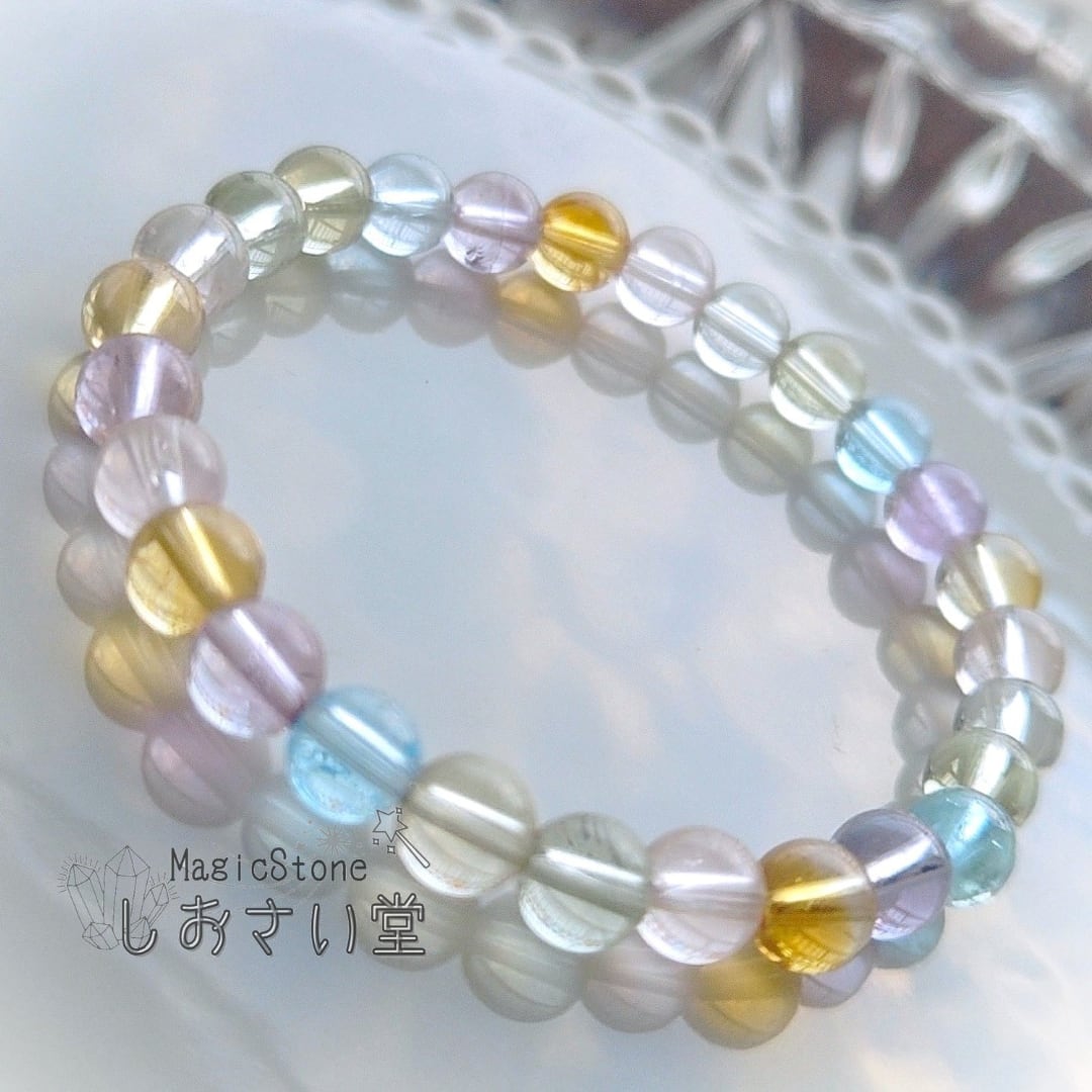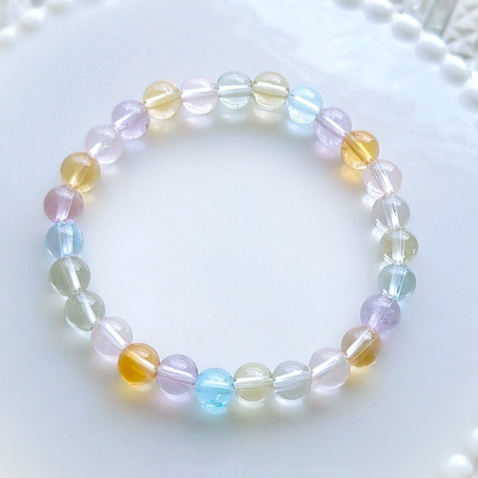ブルートパーズ・ラベンダーアメジスト・シトリン・プラシオライト・ローズクォーツ・レモンクォーツ――6つの波動がひとつの輪となり、魂の進化をサポートします。