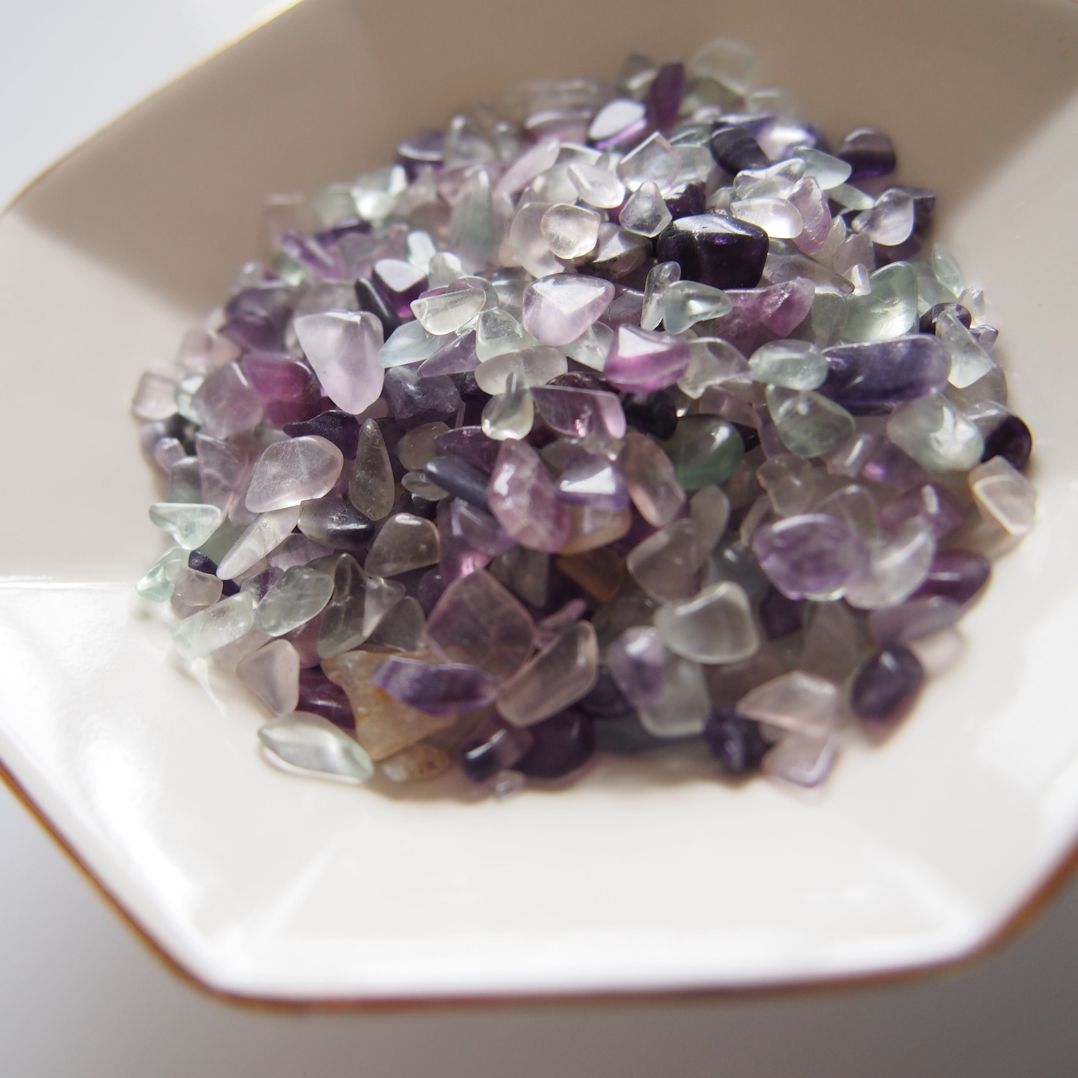 パープル系からグリーン系までの混色のフローライトがバランスよく配合された浄化用ストーン