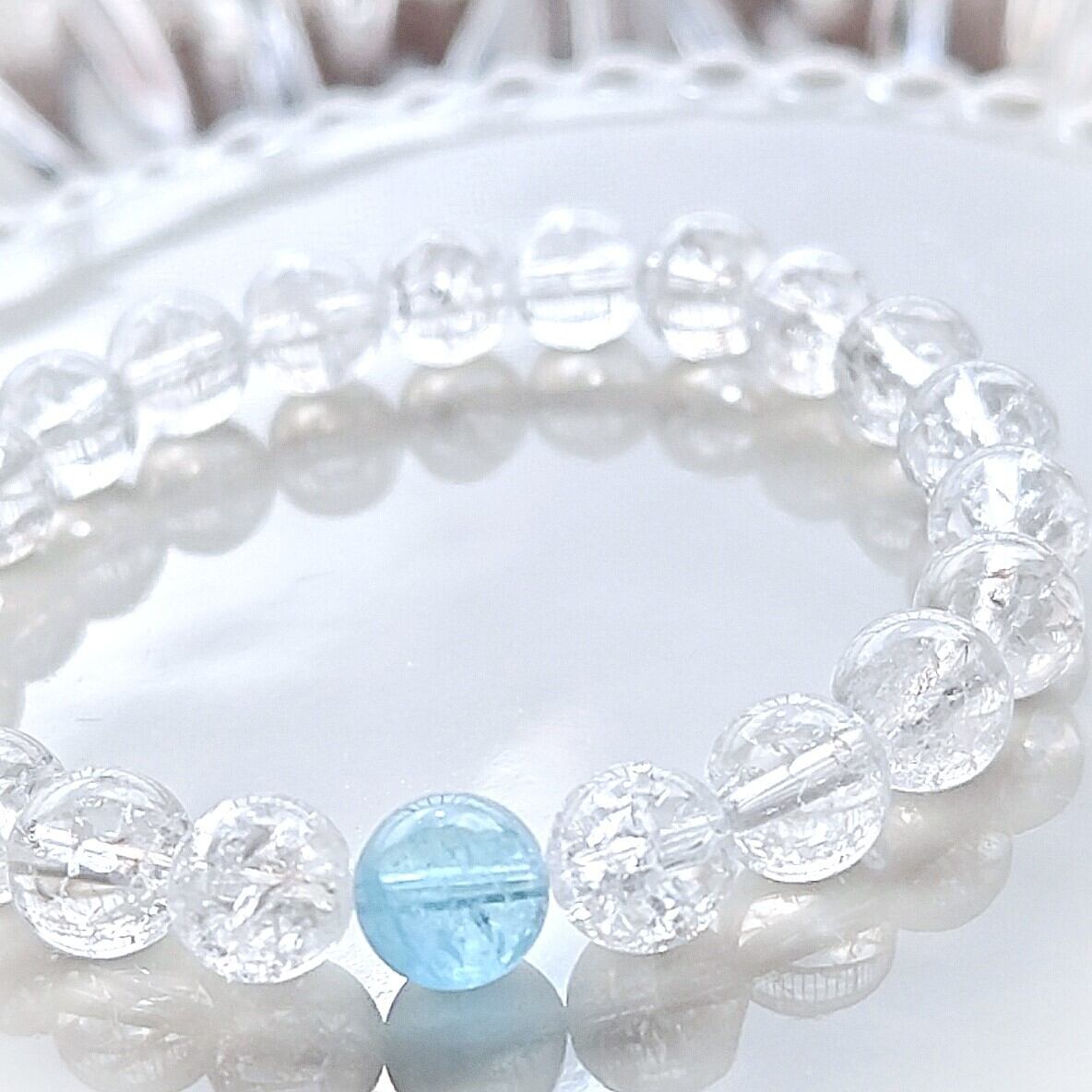 さりげない優しさをまとう✨4Aアクアマリン×クラッククォーツブレスレット15cm