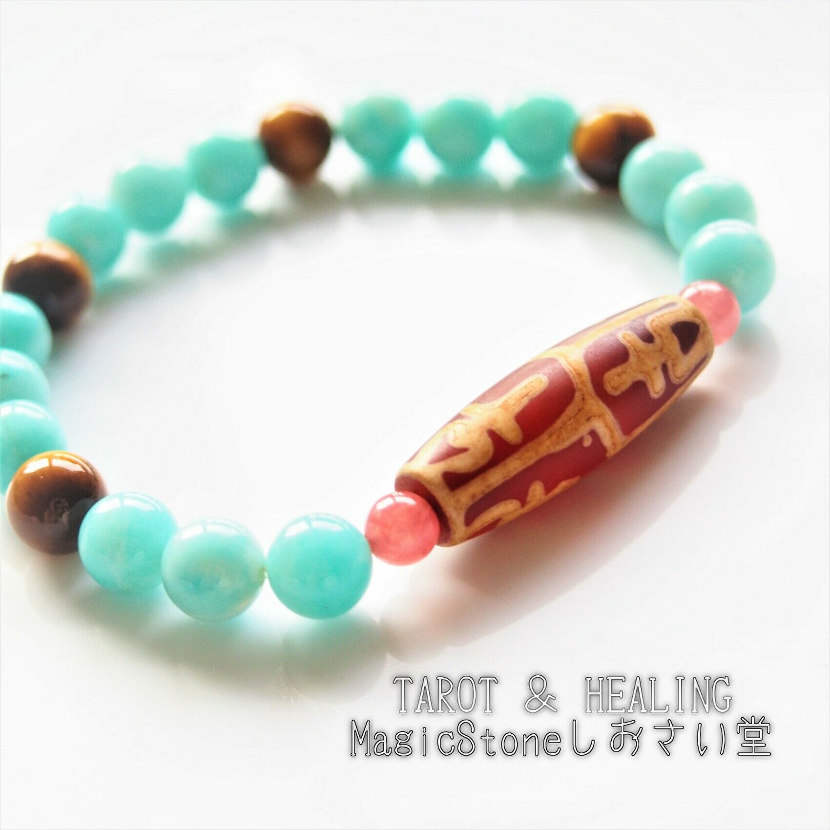 今回は、明るいブルーグリーンで成功をもたらすと言われるアマゾナイト、