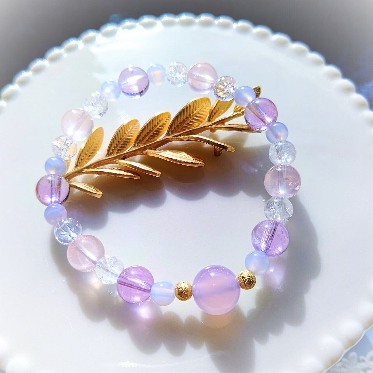 天然色癒しのパステルカラー✨ラベンダーカルセドニーブレスレット15.5cm