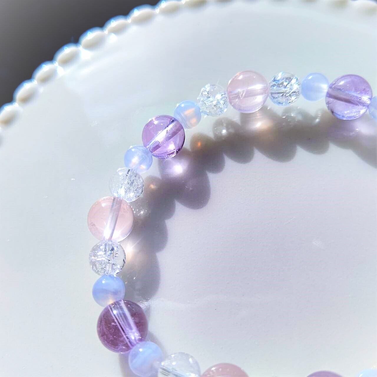 パステルカラーの癒やし系ブレスレットです。