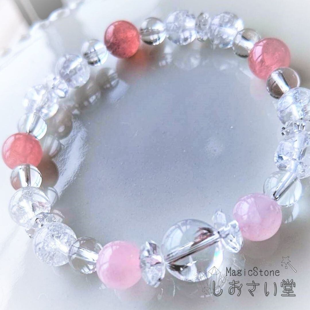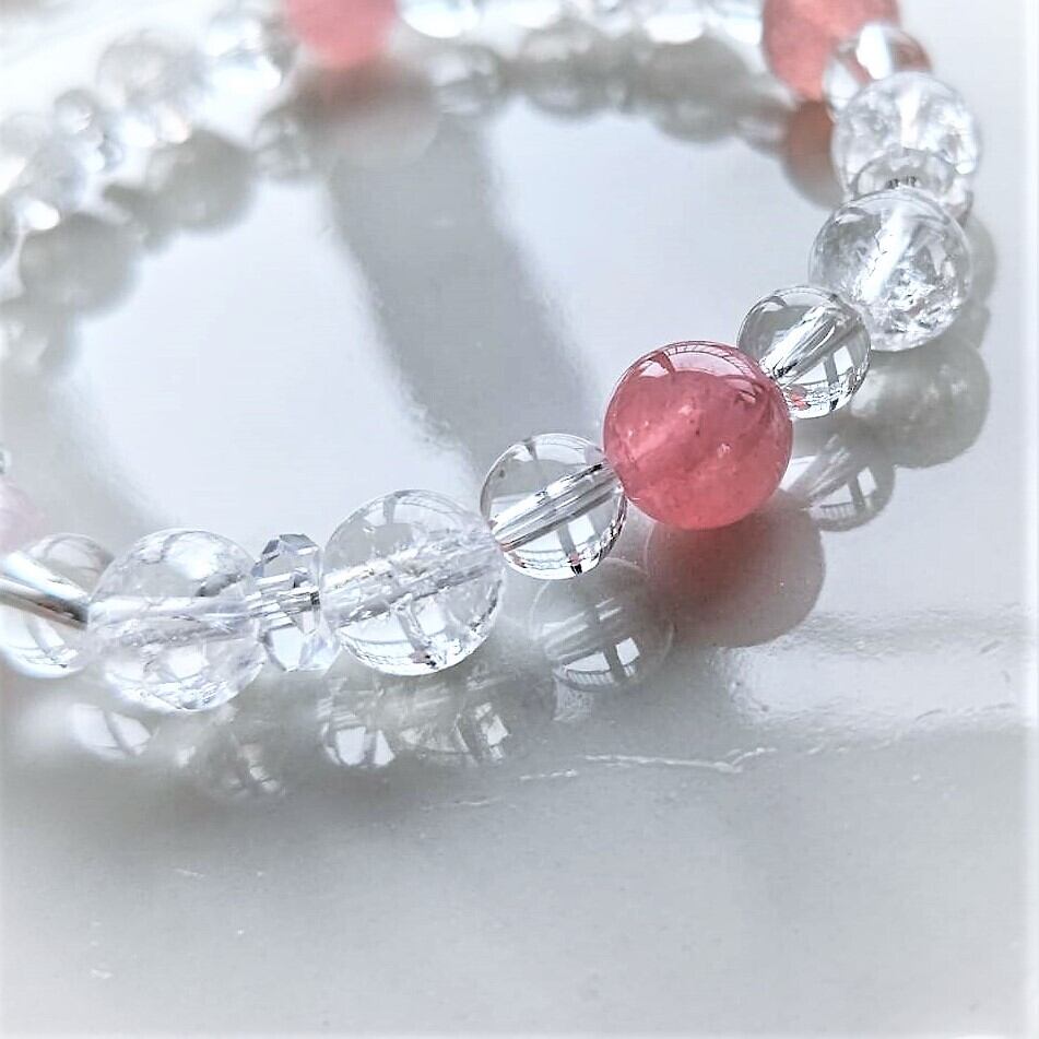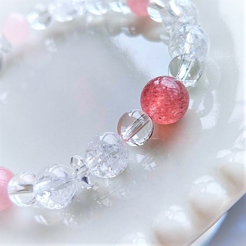 甘くてすっぱい苺ミルクかき氷色✨アイリスクォーツ入りブレスレット15.5cm