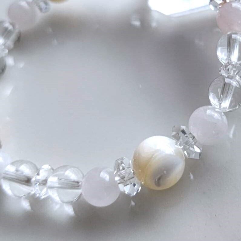 6mmのクリスタルを基調に、マザーオブパールとオレンジムーンストーンは8mmを選びました。