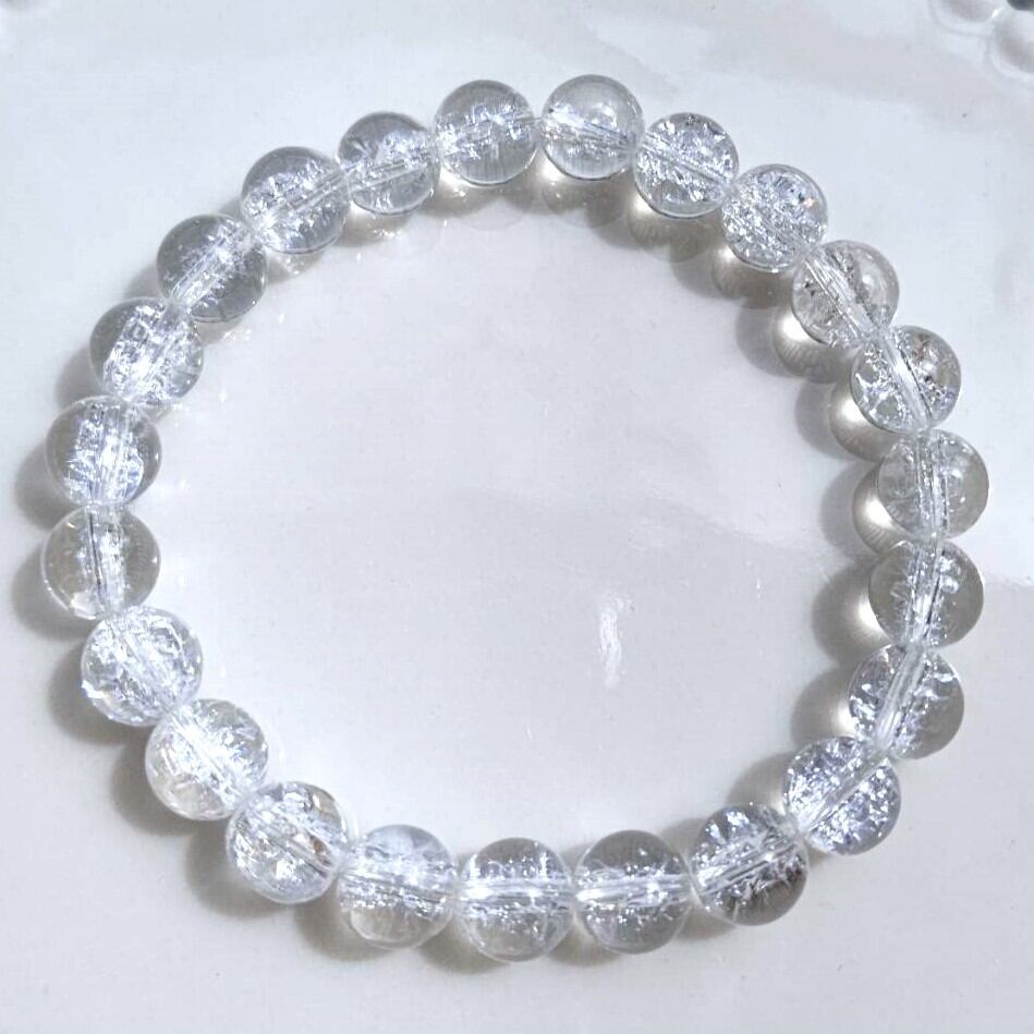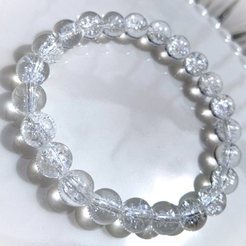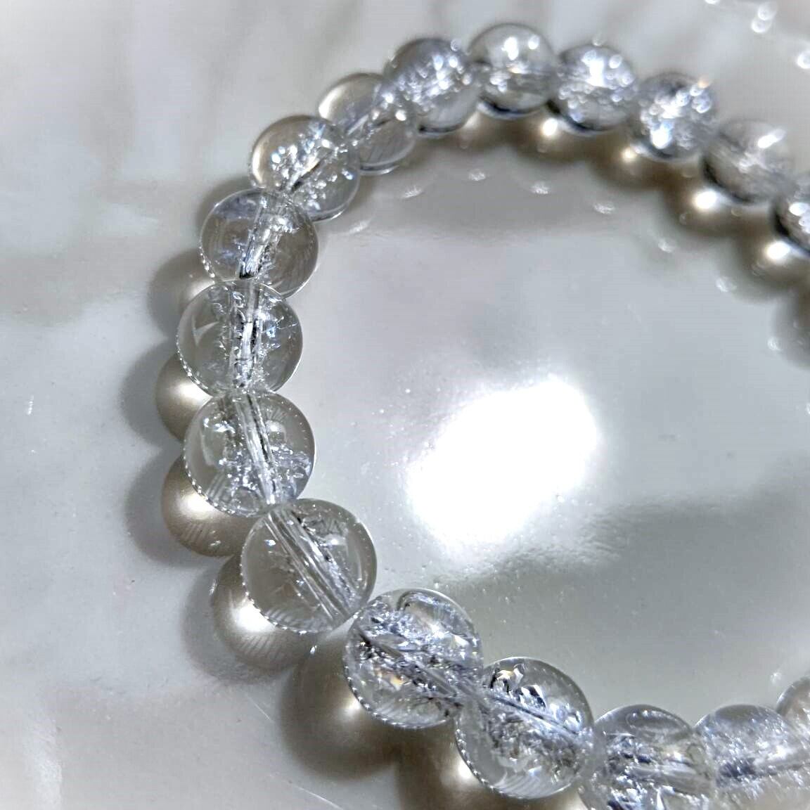 ただしクラッククォーツはほとんどが水晶に人工加工を施し、圧力でクラックを作っていますので、珠全体にクラックが入ります。