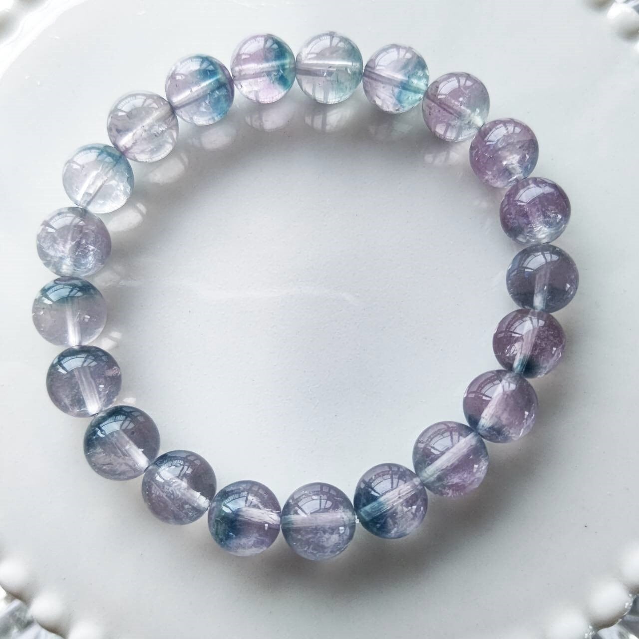 9mmピンクフローライトのバイカラーブレスレットです。