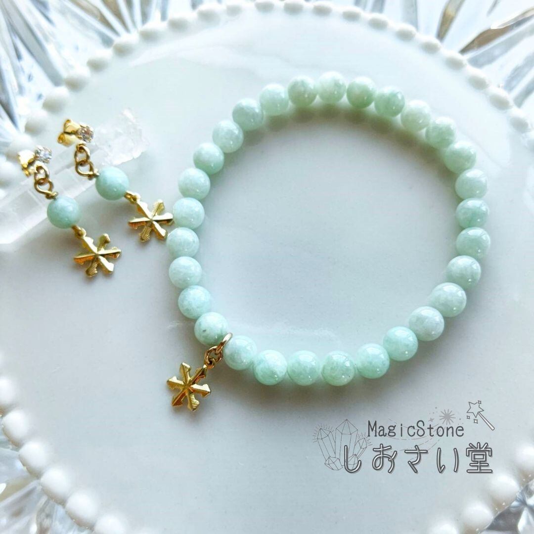 本翡翠アイスグリーンカラー✨雪の女王❄️16cmブレスレット&ピアスセット