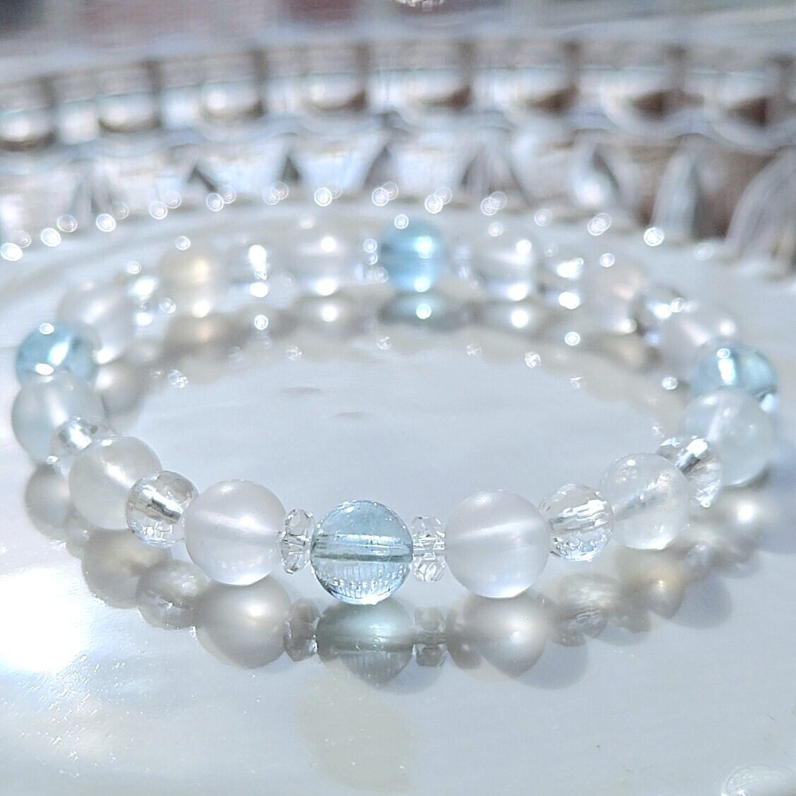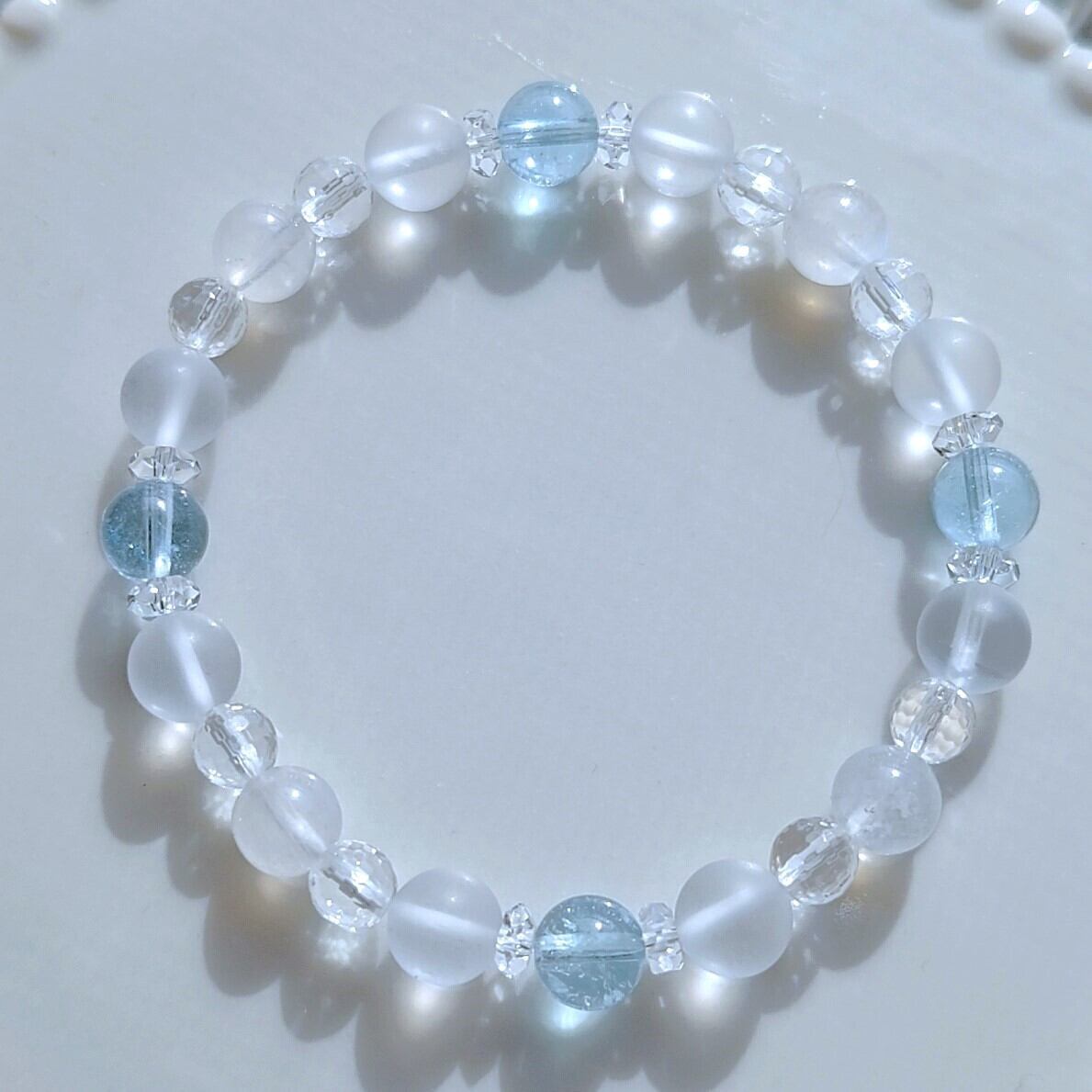 雪をわたる風のきらめき✨ブルートパーズ×ブルームーンストーンブレスレット17cm